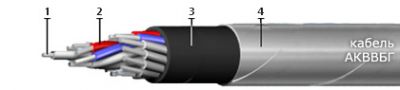 - АКВВБ – в конструкции кабеля в качестве внешней оболочки используется стеклопряжа, кабель можно использовать в земле при воздействии блуждающих токов.