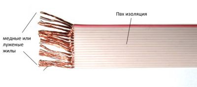 - Жилы из меди или луженые располагаются параллельно в одной плоскости;